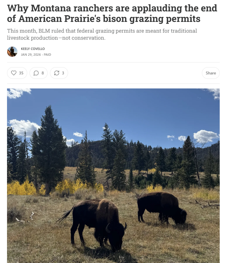 • Trump Administration revokes American Prairie’s bison grazing permits. Is this good or bad?